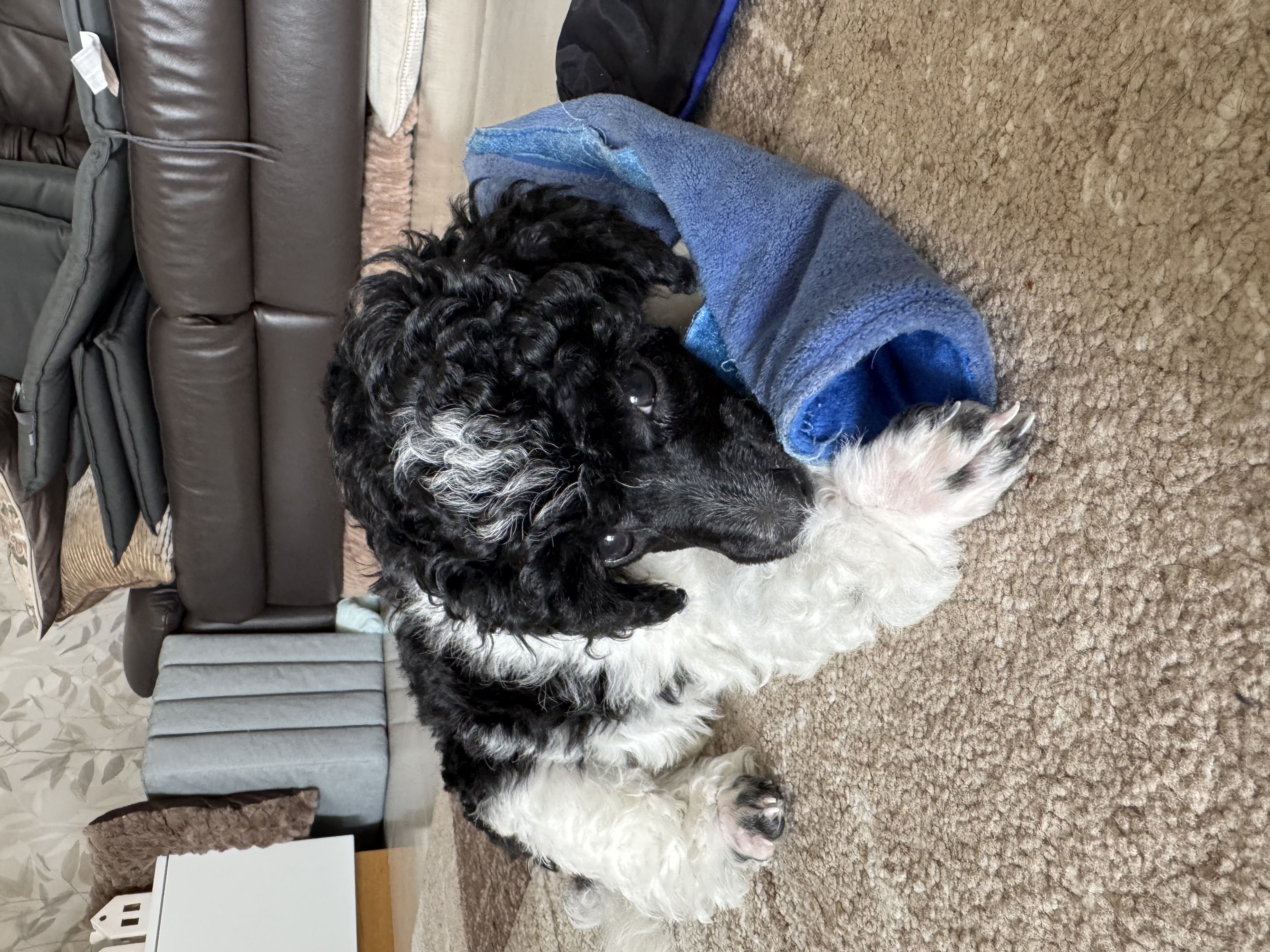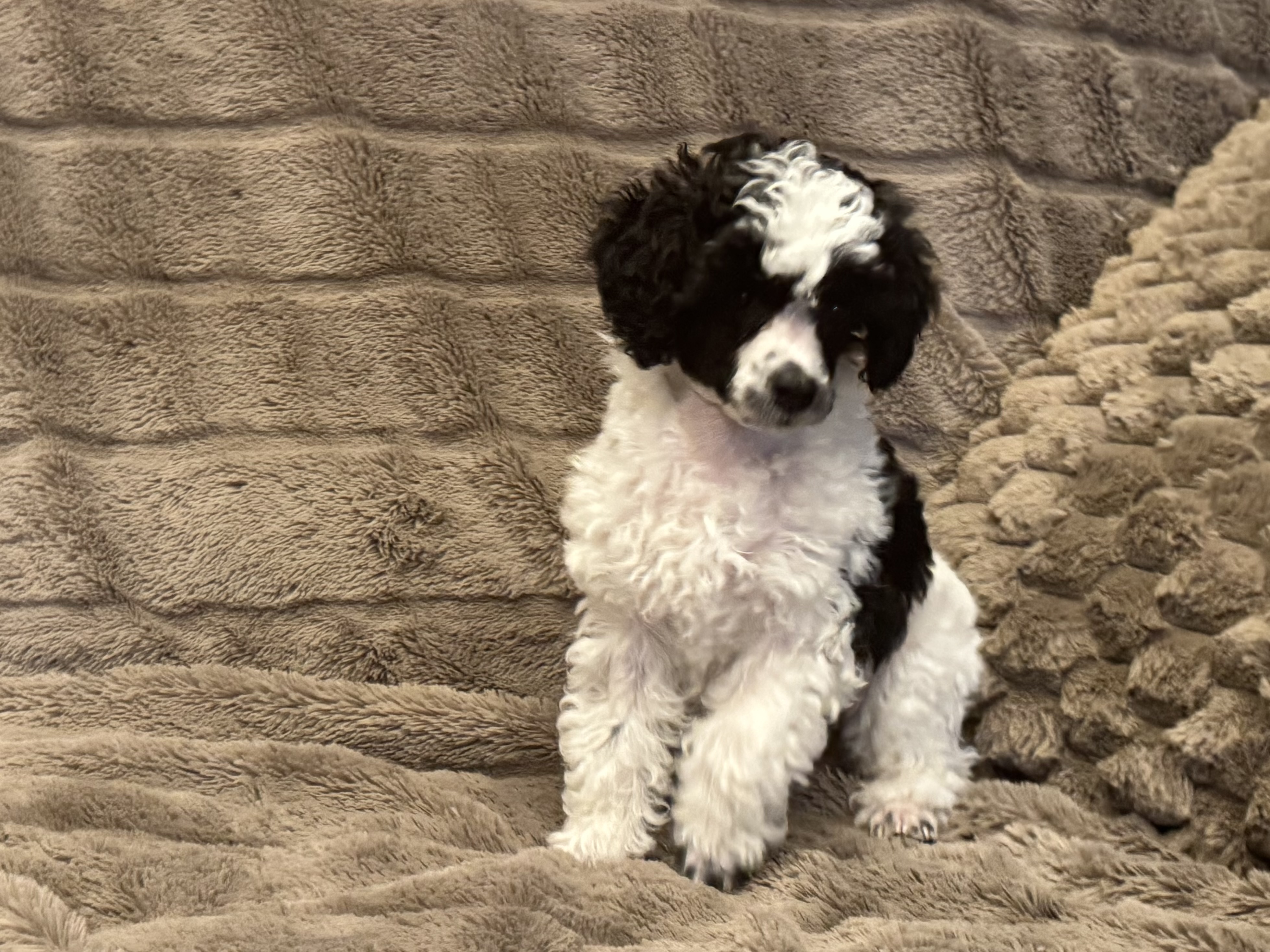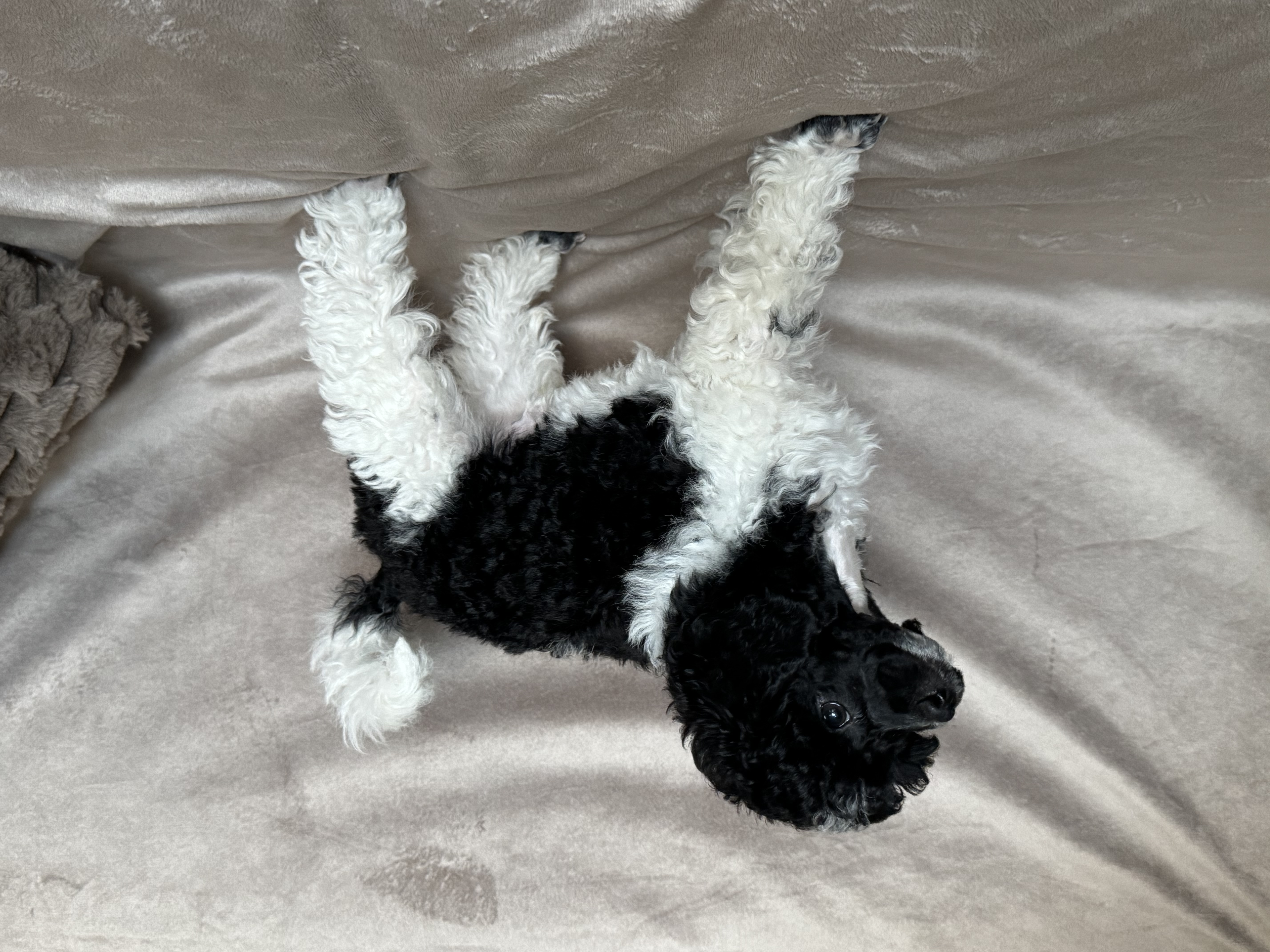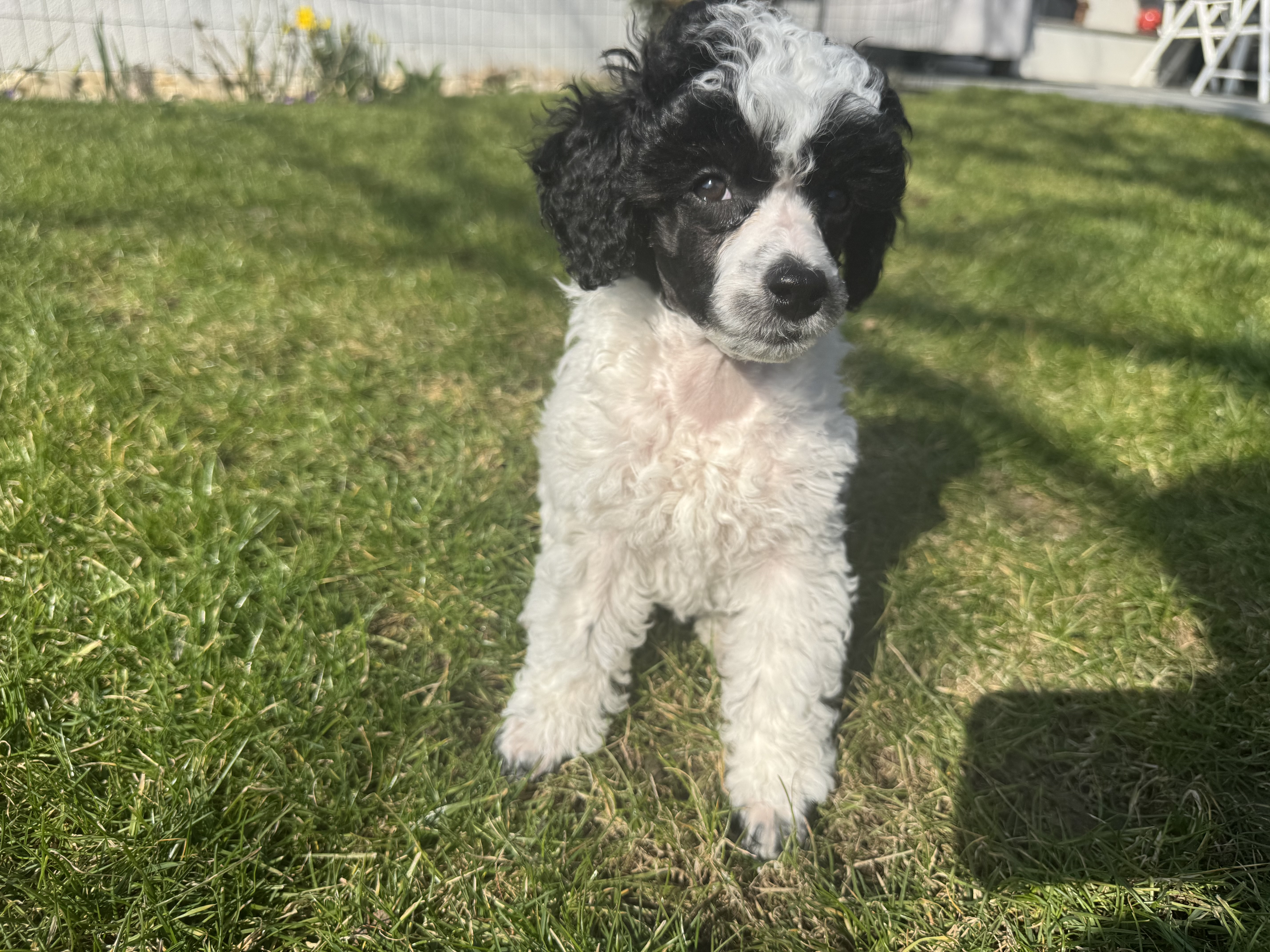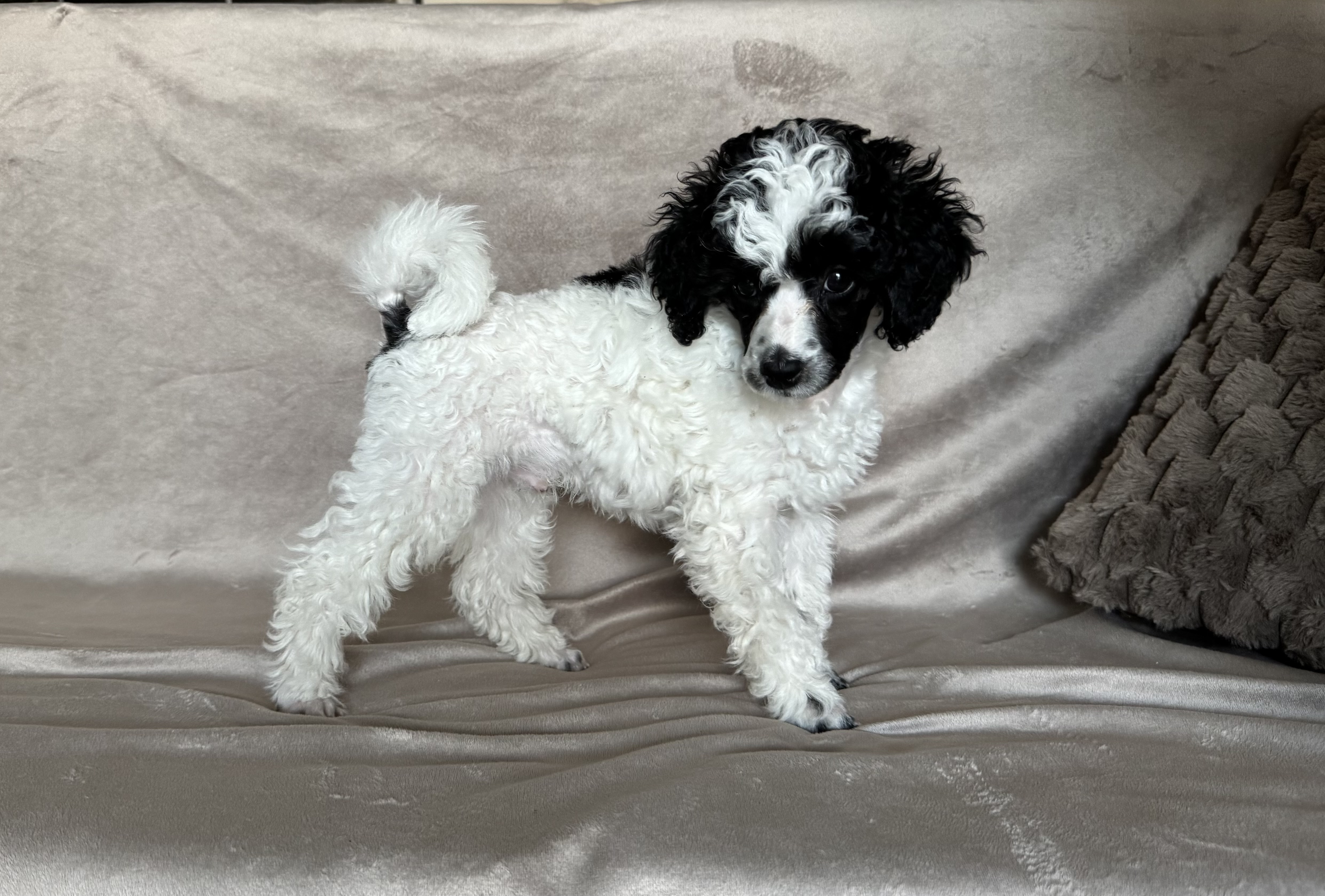 Cierno biele trpasličie pudliky (harlekýn), standard FCI sú cipovane odcervene a zaočkované, k odberu pripravené koncom marca.
